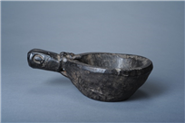 A MODANG BOWL - A Modang bowl with Aso high relief motif on the handle and an abstract design featuring nose and a tongue that curls finely with a hole that had some attachments hung from it at the end of the terminal handle, the eyes are visible at the back of the arms of the high relief aso motif. Very simple yet smart design. This bowl was probably used for making poison and late 19th Cent to early 20th Cent.