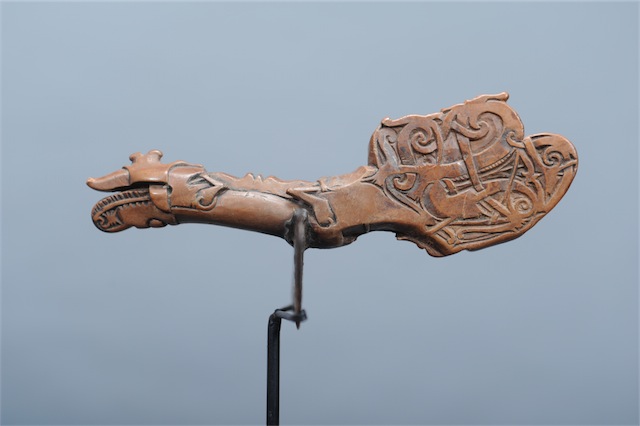 A "padi" rice cutting tool, carved with and abstract aso on one face, and the other a slightly larger aso design, the other end features a hornbill on top when rotated on other side it features an aso with its body being the grip of this tool. All protruding arms are seen at the end of each aso as well. Brilliant exhibition of Ao Heng creativity and style. Even the blade features tendril motifs.