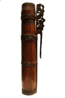 An old bamboo dart cointainer, attached by rattan binding to a carved "Naga" dragon wood waist hook.